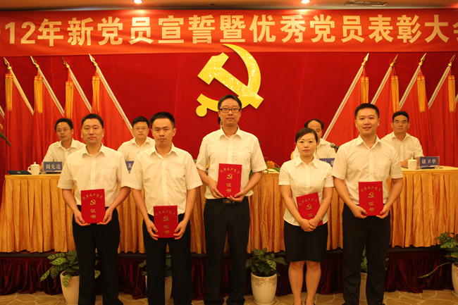 6月29日上午,中共星空在线登录委员会2012年新党员宣誓暨优秀党员表彰大会在长沙隆重举行。大会在庄严的《国歌》声中开幕。党委全体成员、星空在线登录全体党员、入党积极分子参加了会议。会议由刘健同志主持。